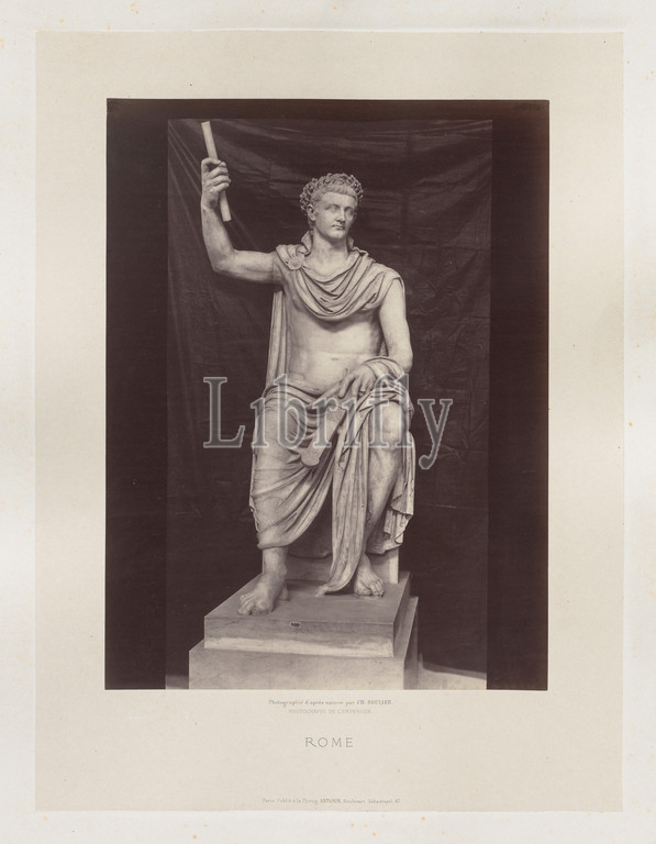 Statue de Tibere, Vatican, c. 1860. Charles Soulier (French, 1840-1875). Albumen print from a collodion negative; image: 40.7 x 30.5 cm (16 x 12 in.); paper: 40.7 x 30.5 cm (16 x 12 in.); mounted, primary: 53.8 x 40.5 cm (21 3/16 x 15 15/16 in.); mounted, secondary: 74.8 x 56 cm (29 7/16 x 22 1/16 in.).