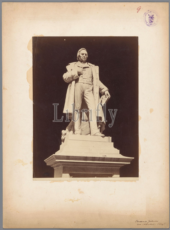 Statue, Vincenzo Gioberti, Turin, Giovani Albertoni, Vincenzo Gioberti dell Albertini, anonymous, Turijn, 1850, 1900, photographic support, cardboard, albumen print, height 393 mm, width 290 mm