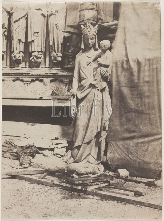 Statue, Virgin, Notre Dame de Paris, 1853, Auguste Mestral, French, 1812-1884, Salted paper print, paper negative, image