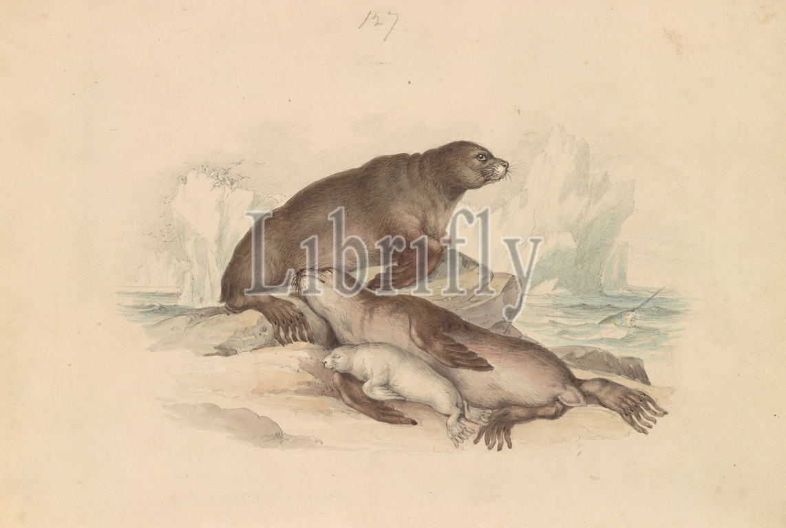 Steller Sea Lion, James Stewart, 1791–1863, British, ca, 1837, Watercolor, graphite, pen, brown ink, gray ink, thick, smooth, cream, wove paper, Sheet