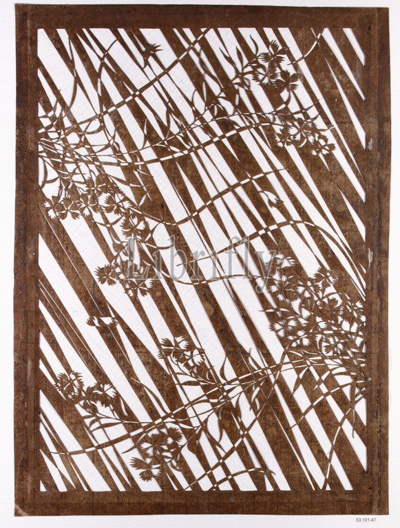 Stencil with Pattern of Pinks, Edo period (1615–1868), 19th century, Japan, Paper and silk, 21 3/4 x 16 in. (55.2 x 40.6 cm), Stencils, This stencil is an excellent example of the textile designer's art, with its masterful play of light and dark, positive and negative. A floral pattern and an irregular diagonal background are also seen in the obi worn by the woman in the accompanying print