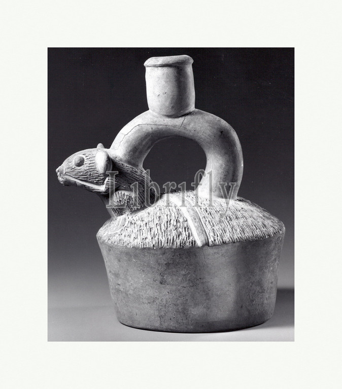 Stirrup Spout Bottle: Mouse, 12th–5th century B.C., Peru, Chiclayo, Cupisnique, Ceramic, H. 8 in. (20.3 cm), Ceramics-Containers, Despite its pervasiveness, the spread of Chavín art throughout much of Peru in the first millennia B.C. did not preclude the expression, proliferation, and production of local and regional art styles in some highland and coastal communities