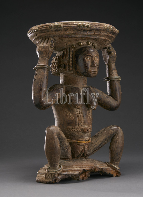 stool, female figure, Zula, 1870-1920, wood, pigment, cloth, metal, H, 17, African Art