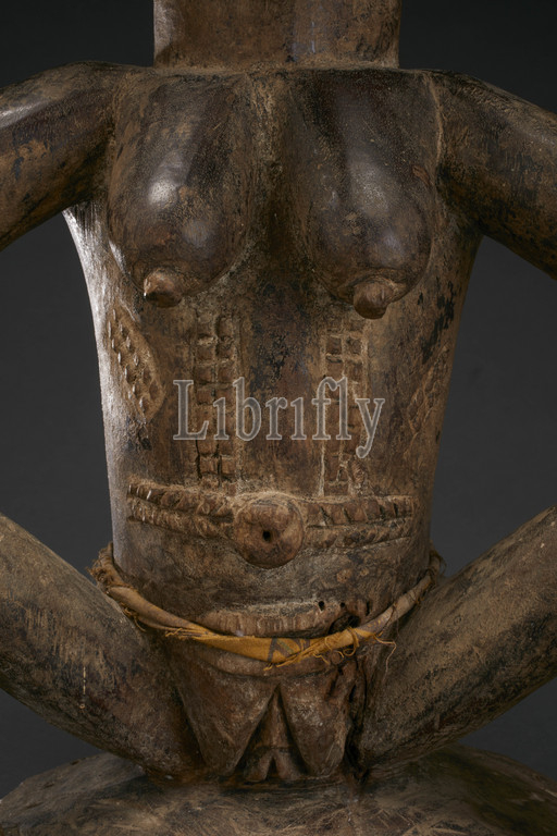 stool with female figure, Zula, 1870-1920, wood, pigment, cloth, metal, H: 17 in., African Art