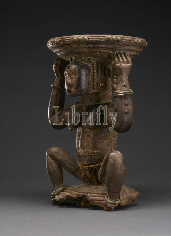 stool, female figure, Zula, 1870-1920, wood, pigment, cloth, metal, H, 17, African Art