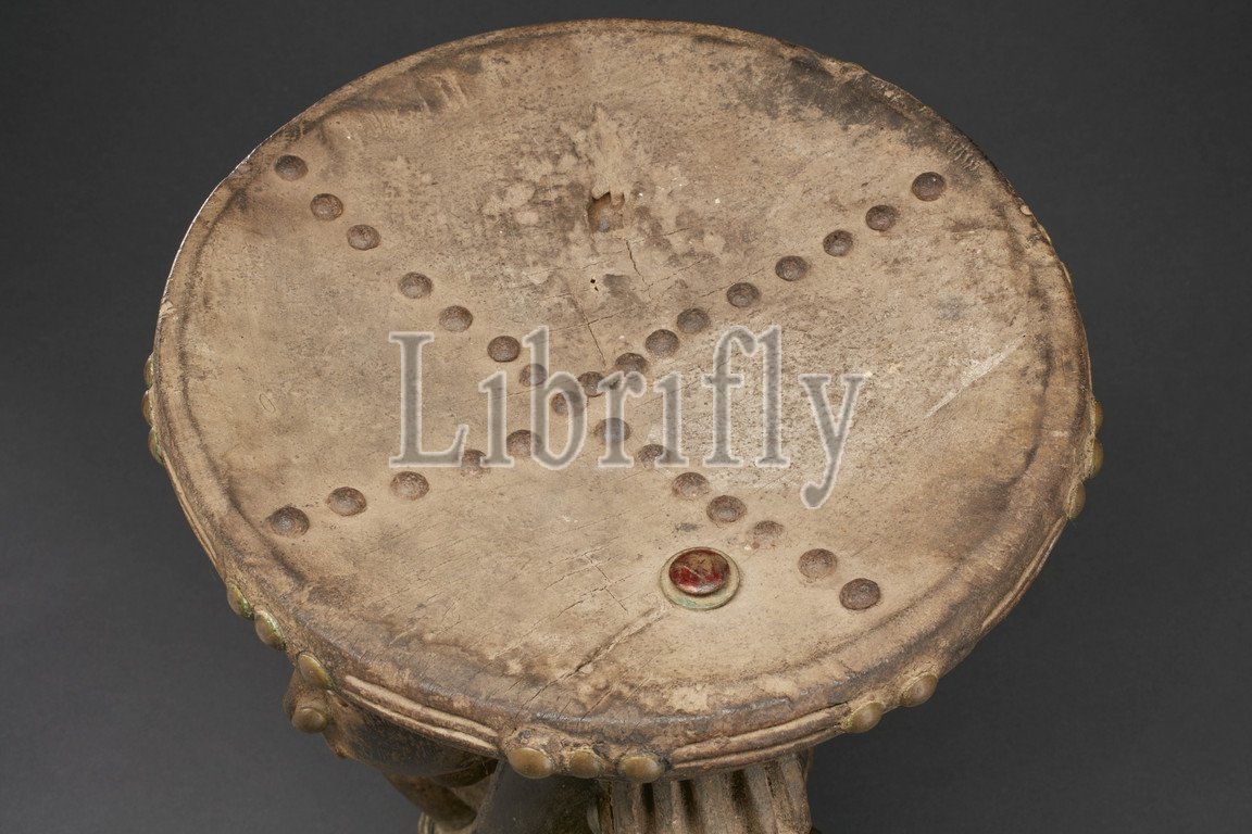 stool with female figure, Zula, 1870-1920, wood, pigment, cloth, metal, H: 17 in., African Art