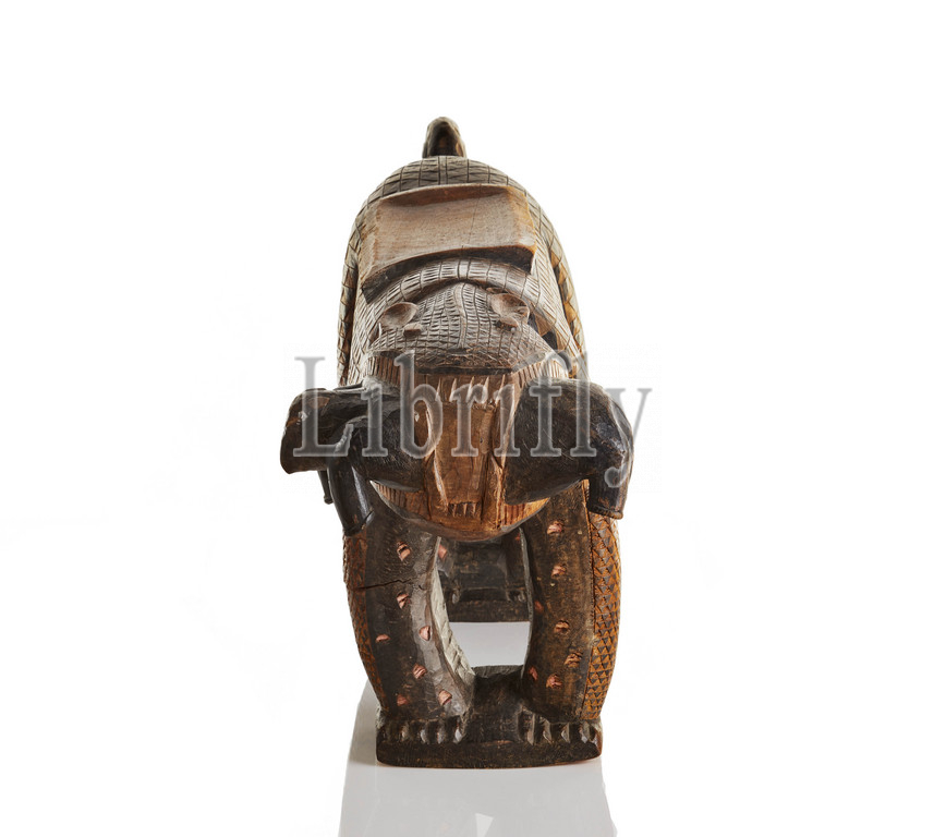 stool in the form of a leopard, Baule people, 20th century, wood, pigment, 18-1/2 x 14-3/4 x 12 in., African Art