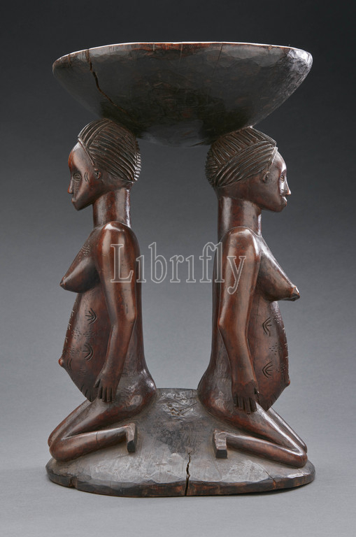 stool, janus female figures, Zela, early 20th century, wood, 15-1/8 x 9 x 9, African Art