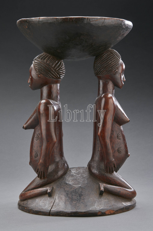 stool, janus female figures, Zela, early 20th century, wood, 15-1/8 x 9 x 9, African Art