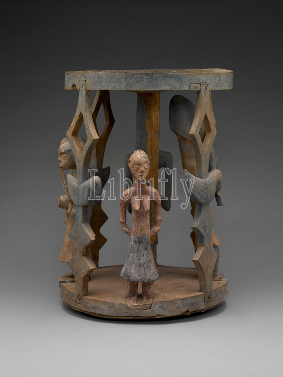 stool or pedestal with human figure, Yoruba people, wood, 24-5/8 x 18 x 18 in., African Art