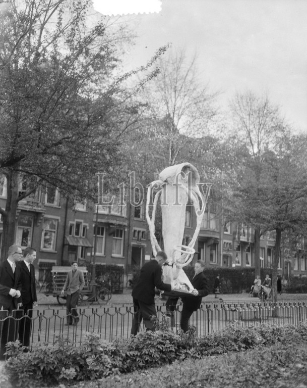 Students place statue at Valerius Square, November 6, 1953, Places, STUDENTS, images, The Netherlands, 20th century press agency photo, news to remember, documentary, historic photography 1945-1990, visual stories, human history of the Twentieth Century, capturing moments in time