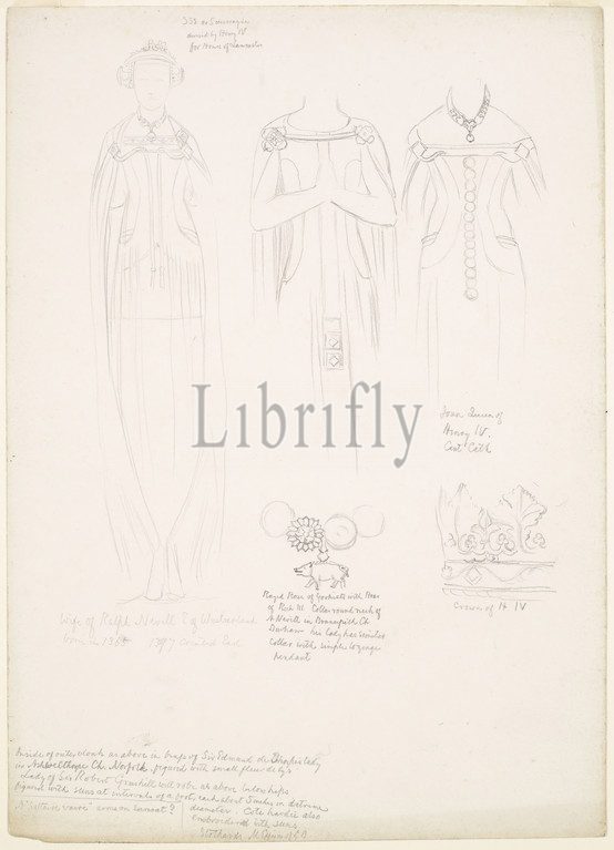 Studies of Female Tomb Sculpture, a Collar and Crown, 1890 William Holman Hunt, Drawing, Ink, Pencil, Collar, Sculpture, Sketch, Pre-Raphaelite, Female, crown, Funeral