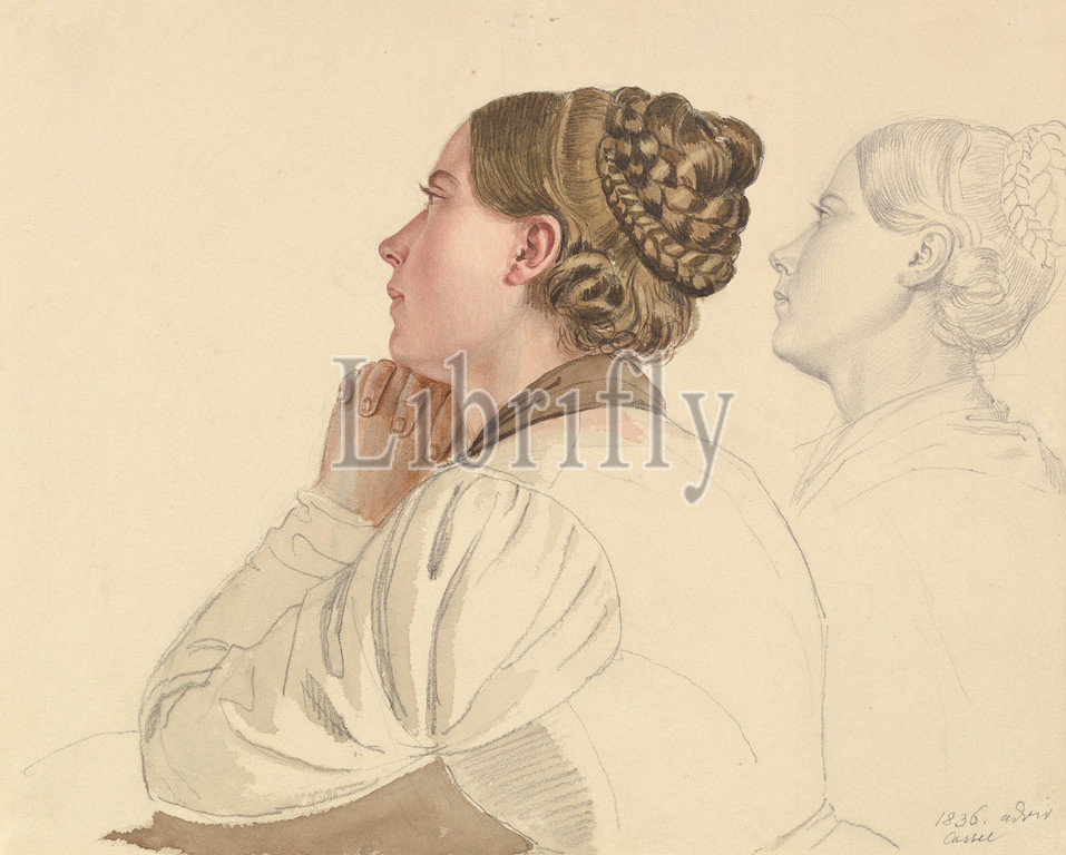 Studies of a Woman Praying, early to mid-19th century, Graphite and watercolor, sheet: 7 1/4 x 8 7/8 in. (18.4 x 22.6 cm), Drawings, Ludwig Emil Grimm (German, Hanau 1790–1863 Kassel)