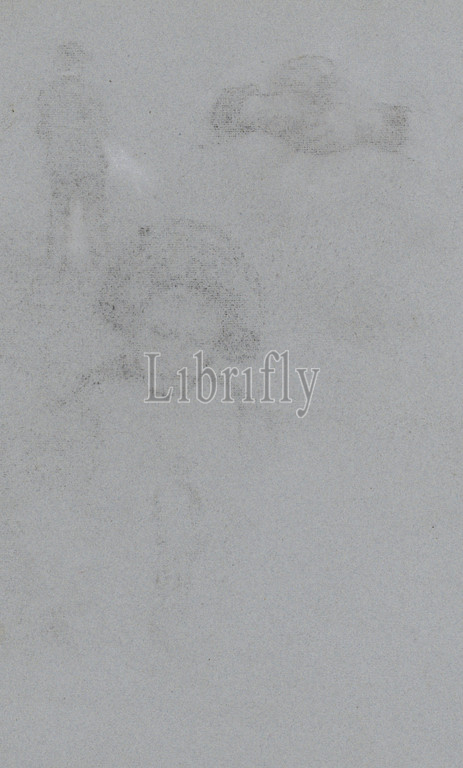 Studies of a woman's head, a man seen from behind and hands no longer present in the sketchbook. Sheet 36 recto from a sketchbook with 42 sheets, Ablatsch from a chalk drawing, Jan Veth, 1874 - 1925