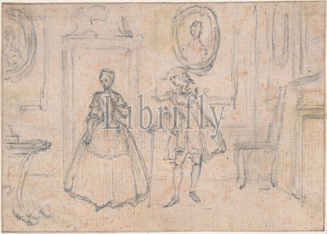 Study, Engraving, Songs, Opera, Flora, ca, 1737, Pen, blue ink, black chalk, 2 13/16 x 3 15/16, 7.2 10 cm, Drawings, Hubert François Gravelot, French, Paris, 1699–1773