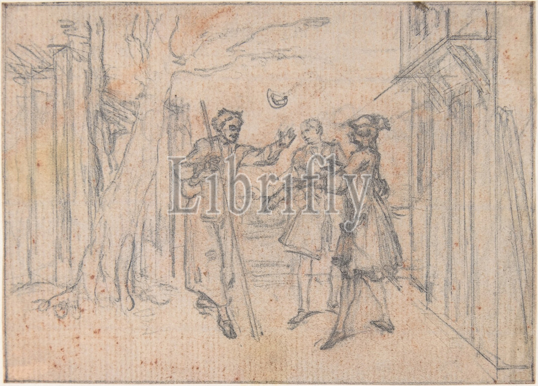 Study, Engraving, Songs, Opera, Flora, ca, 1737, Pen, blue ink, black chalk, slight traces, red, 2 13/16 x 3 15/16, 7.2 10 cm, Drawings, Hubert François Gravelot, French, Paris, 1699–1773