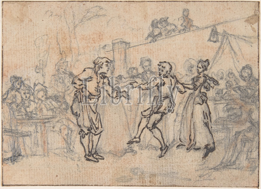 Study, Engraving, Songs, Opera, Flora, 18th century, Pen, black ink, chalk, graphite underdrawing, 2 13/16 x 3 15/16, 7.2 10 cm, Drawings, Hubert François Gravelot, French, Paris, 1699–1773