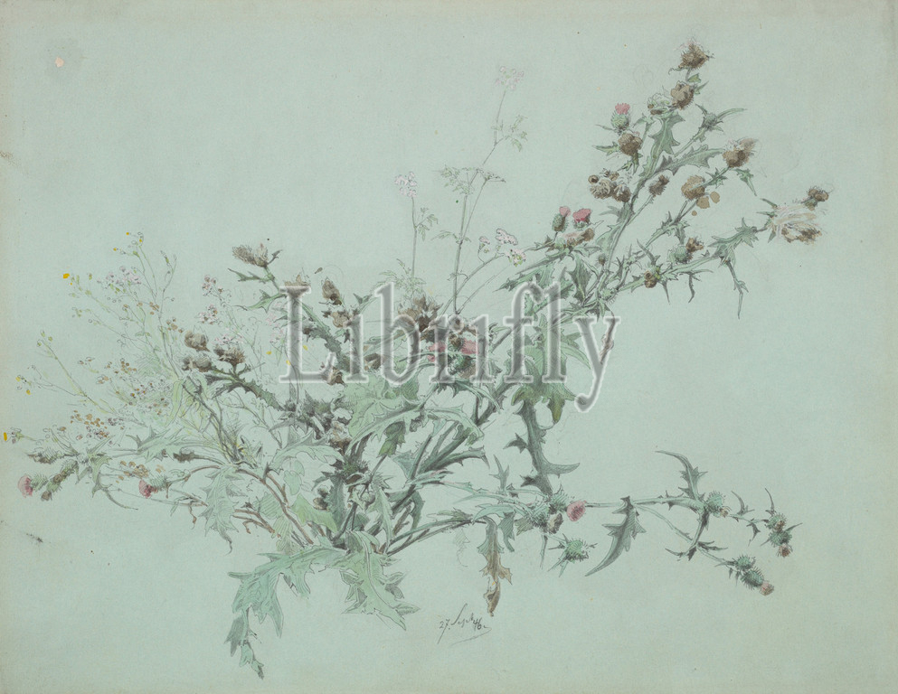Study, Flowering Thistle, 1846, Graphite, watercolor, sheet, 9 3/8 x 12 1/8, 23.8 30.8 cm, Drawings, Carl Georg Anton Graeb, German, Berlin, 1816–1884
