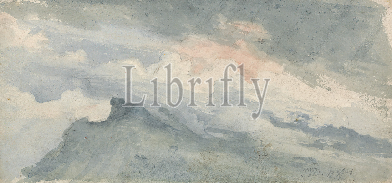 Study, Hill Top, Sky, James Ward, 1769–1859, British, Watercolor, graphite, black chalk, medium, smooth, cream wover paper, Sheet, hill, landscape, sky, study, visual work