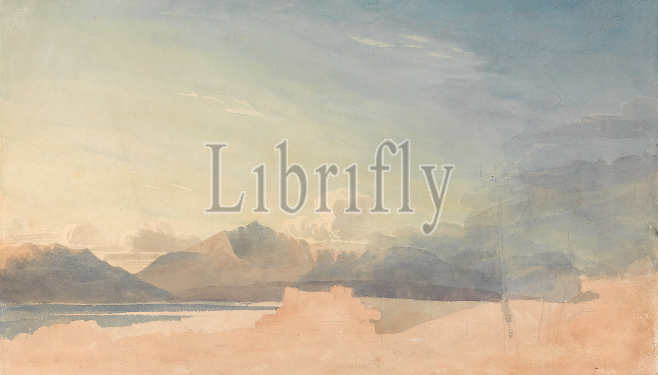 Study, Harlech Castle, Cornelius Varley, 1781–1873, British, John Varley, 1778–1842, British, Watercolor, graphite, medium, moderately textured, cream, wove paper, Sheet, castle, clouds, landscape, mountains, sea, Cymru, Europe, Harlech Castle, Irish Sea, United Kingdom, Wales