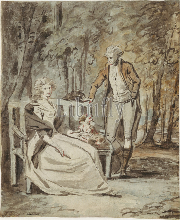 Study, Portrait, Lady, Gentleman, Park, ca, 1780, Brush, watercolor, colored washes, pencil, thin paper, 8 3/4 x 7 1/4, 22.2 18.4 cm, Drawings, England, eighteenth century