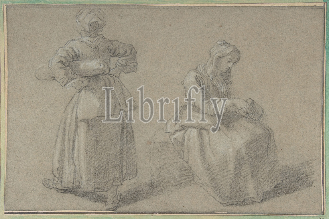 Study, Two Women, ca, 1755, Black chalk, heightened, white, gray paper, 8 7/16 x 13 3/8, 21.5 34 cm, Drawings, Étienne Jeaurat, French, Vermenton, 1699–1789, Versailles, Jeaurat, literary society interested, social life, outside, aristocratic, circles, Société du, Bout, du, Banc, painted unidealized, genre, scenes, working classes, drawing, study, painting, Painter, Move, Le déménagement, peintre