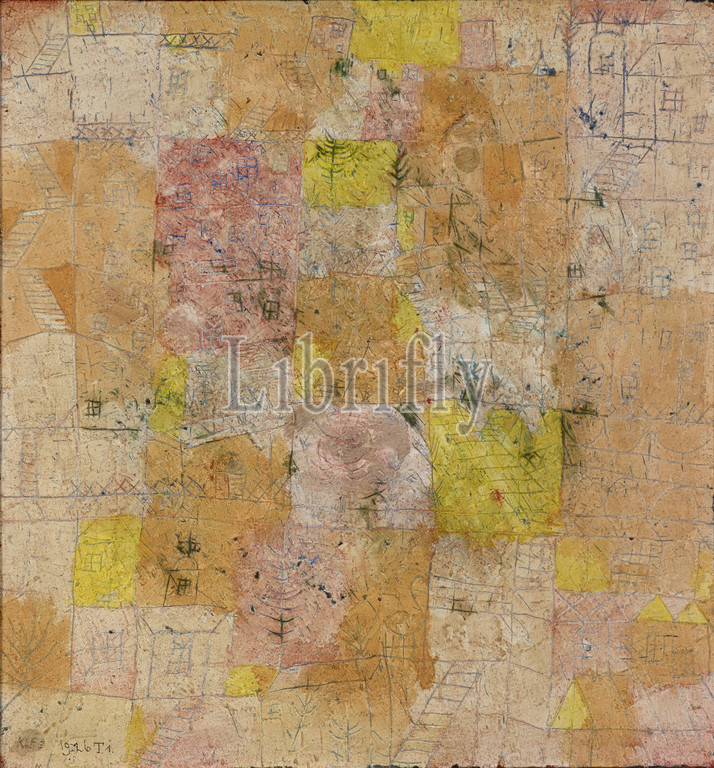 Suburban Idyll, Gartenstadtidyll, 1926, 191, T 1, oil, incised drawing, oil-putty sand primer, gypsum board, original frame borders, 42.5 x 39.5 cm, signed, dated lower left, KLEE, 1926 T. 1., Paul Klee, Münchenbuchsee/Bern 1879–1940 Muralto b. Locarno/Tessin