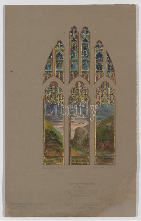 Suggestion for Window; All Saints Church, Atlanta, Georgia, late 19th–early 20th century, Made in New York, United States, American, Watercolor, ink, and graphite on artist board in original shaped matt, Overall: 17 1/2 x 10 7/8 in. (44.5 x 27.6 cm), Drawings, Tiffany Studios (1902–32)