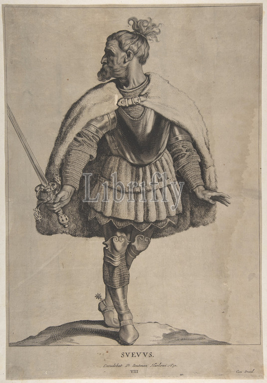Svevus, series Peplus, sive Gothorum, Heruolorum.., 1650, Engraving, etching, sheet, 17 3/8 x 11 15/16, 44.1 30.4 cm, Prints, Engraved by Cornelis Visscher, Dutch, Haarlem, 1629–1658, Amsterdam