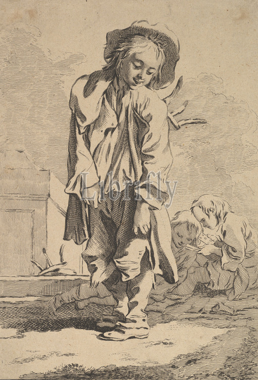 Sweeping from Top to Bottom, Etching and engraving, sheet: 9 3/8 x 6 7/16 in. (23.8 x 16.3 cm), Prints, Jacques Philippe Le Bas (French, Paris 1707–1783 Paris), After François Boucher (French, Paris 1703–1770 Paris)