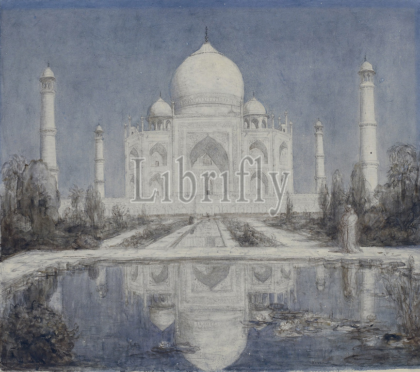 Taj Mahal, moonlight, grave-building, monument tomb, India, Marius Bauer, 1877, 1932, paper, pencil, watercolor, paint, brush
