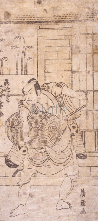 Ōtani Hiroji, role, Yushima no Miyoshi, Torii Kiyotsune, Japanese, Edo, 1760, ink, paper, woodblock print, benizuri-e, 11-1/2 x 5-1/4, image & sheet, trimmed, Signed, artist, Kiyotsune ga, Japanese, Asian Art