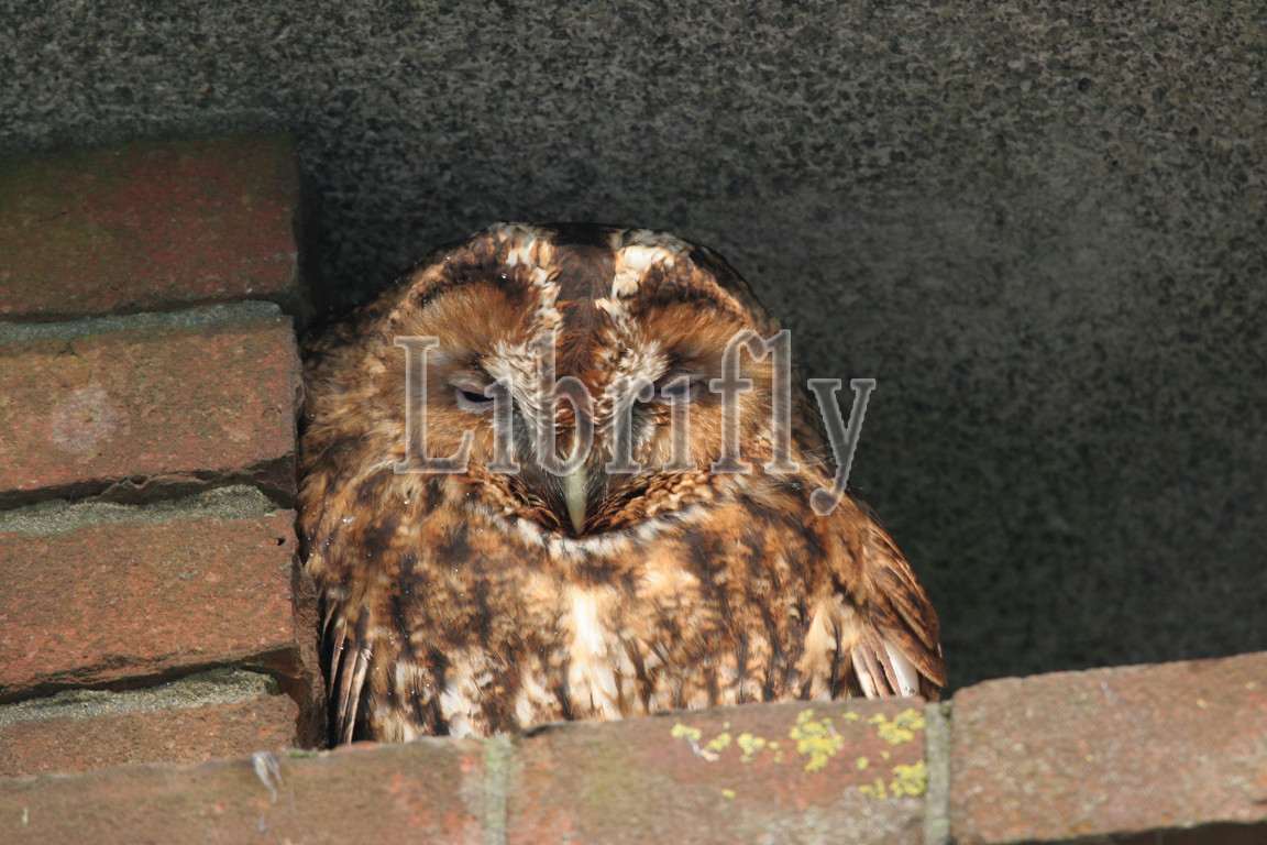 Tawny Owl perched in Chimney, Strix aluco