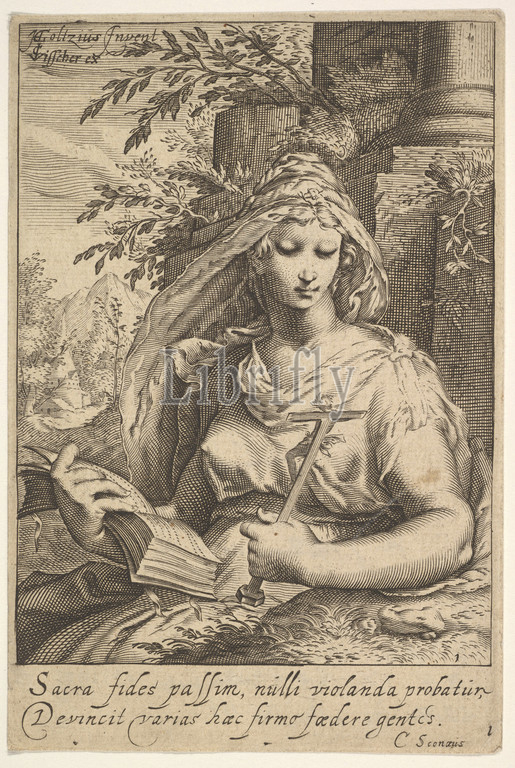 Temperance, from The Seven Virtues, Engraving, sheet: 6 1/16 x 4 1/16 in. (15.4 x 10.3 cm), Prints, Anonymous, Netherlandish, 17th century, After Hendrick Goltzius (Netherlandish, Mühlbracht 1558–1617 Haarlem), After Jacob Matham (Netherlandish, Haarlem 1571–1631 Haarlem)