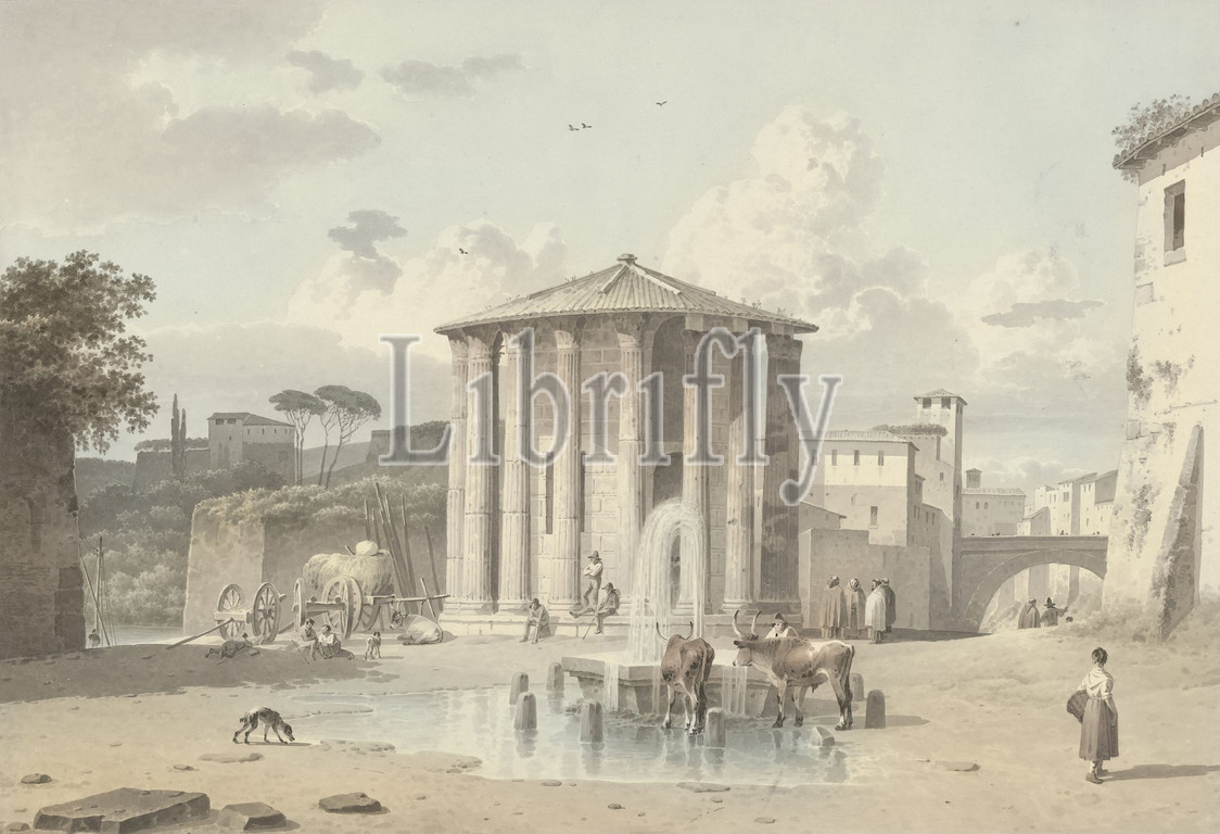 Temple, Vesta, Rome, Drawing, group, 46 drawings, studies, mainly cityscapes, landscapes, City-view, general, veduta, city, cityscape, figures, staffage, ruins, building, architecture, temple, shrine, Roman religion, Josephus Augustus Knip, Italy, c, 1809, 1812, paper, graphite, mineral, watercolor, paint, brush