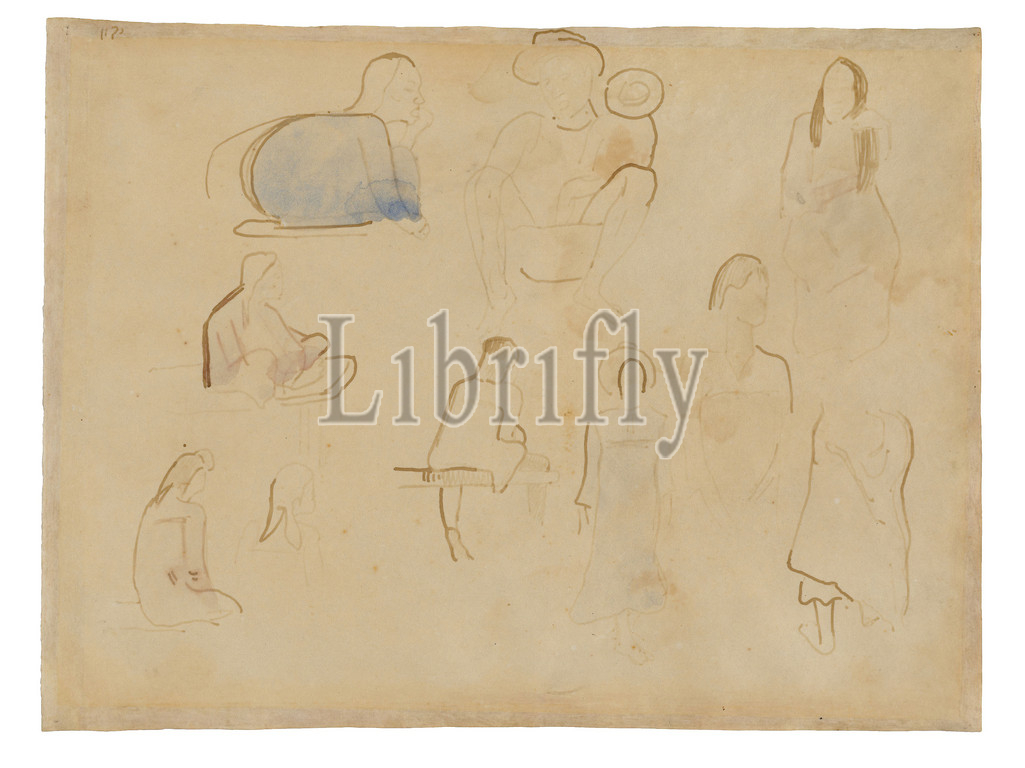 Ten Studies, Tahitian Figures, 1891/93, Paul Gauguin, French, 1848-1903, France, Brush, brown inks, originally purple, watercolor, parchment, 240