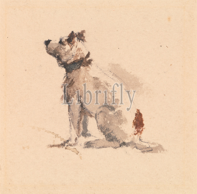 Terrier, Sitting, Facing Left, Peter DeWint, 1784–1849, British, Watercolor, graphite, thick, rough, cream, wove paper, Sheet, animal art, Terrier, dog