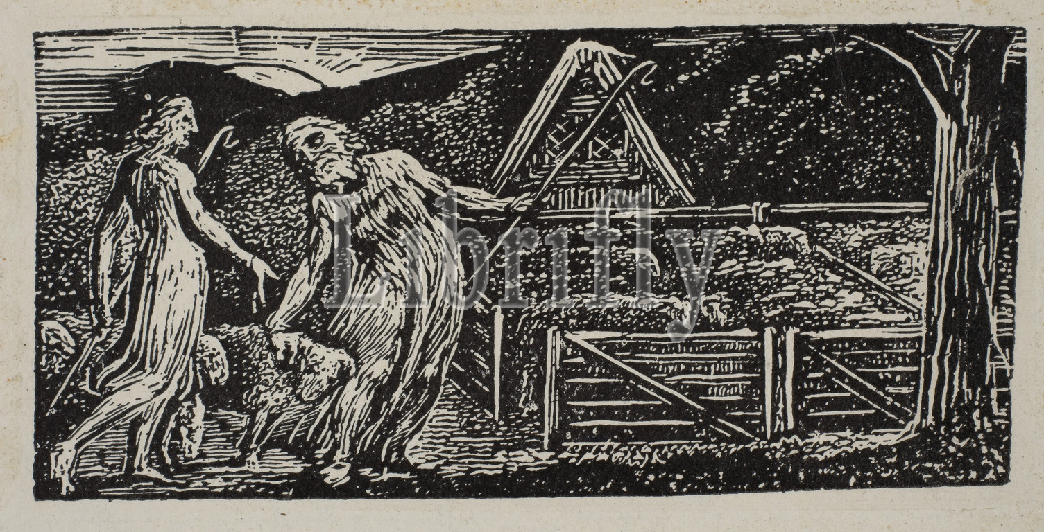 Thenot and Colinet Lead Their Flocks Together, from Thornton's Pastorals of Virgil, 1821, Wood engraving, block: 1 3/8 x 2 15/16 in. (3.5 x 7.5 cm), Prints, William Blake (British, London 1757–1827 London)