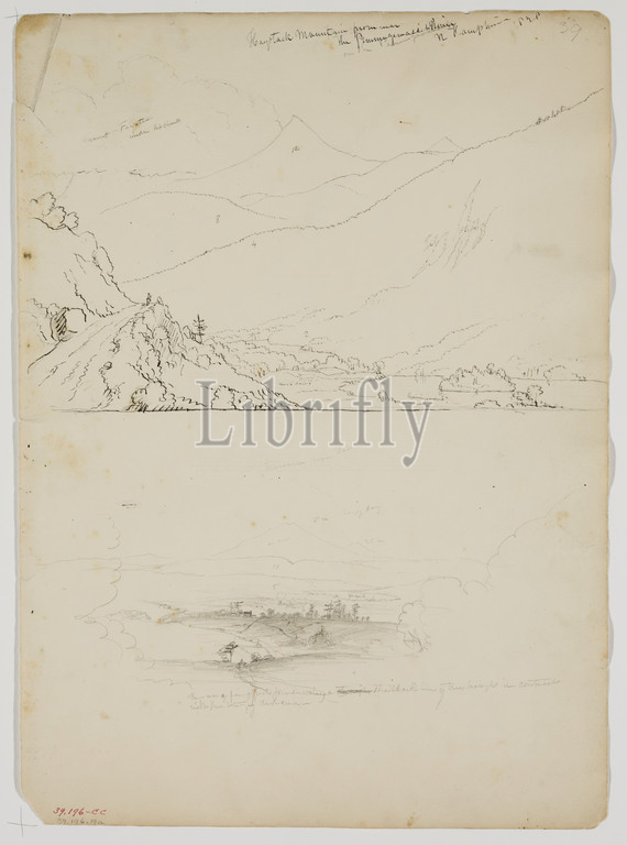 Thomas Cole, American, 1801-1848, Upper, Haystack Mountain, Pemigewasset River, Lower, Kearsarge, 1828, upper drawing, pen, black ink, pencil, lower drawing, graphite pencil, off-white wove paper, Sheet, 14 5/8