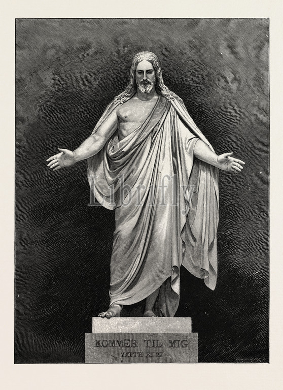 thorwaldsen's, sculpture, monument, statue, saviour, karl, albert, bertel, thorvaldsen, 1770, 1844, danish, sculptor, international, fame, spent, life, italy, 1789, 1838, engraved image, history, illustrative technique, engravement, 19th century engraving, victorian, arts, culture, 19th century style, retro styled, vintage, retro, arkheia