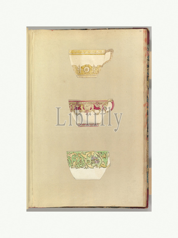 Three Designs, Decorated Cups, 1845–55, Pen, ink, watercolor, sheet, 16 3/4 x 11 7/16, 42.5 29 cm, Alfred Henry Forrester [Alfred Crowquill], British, London, 1804–1872