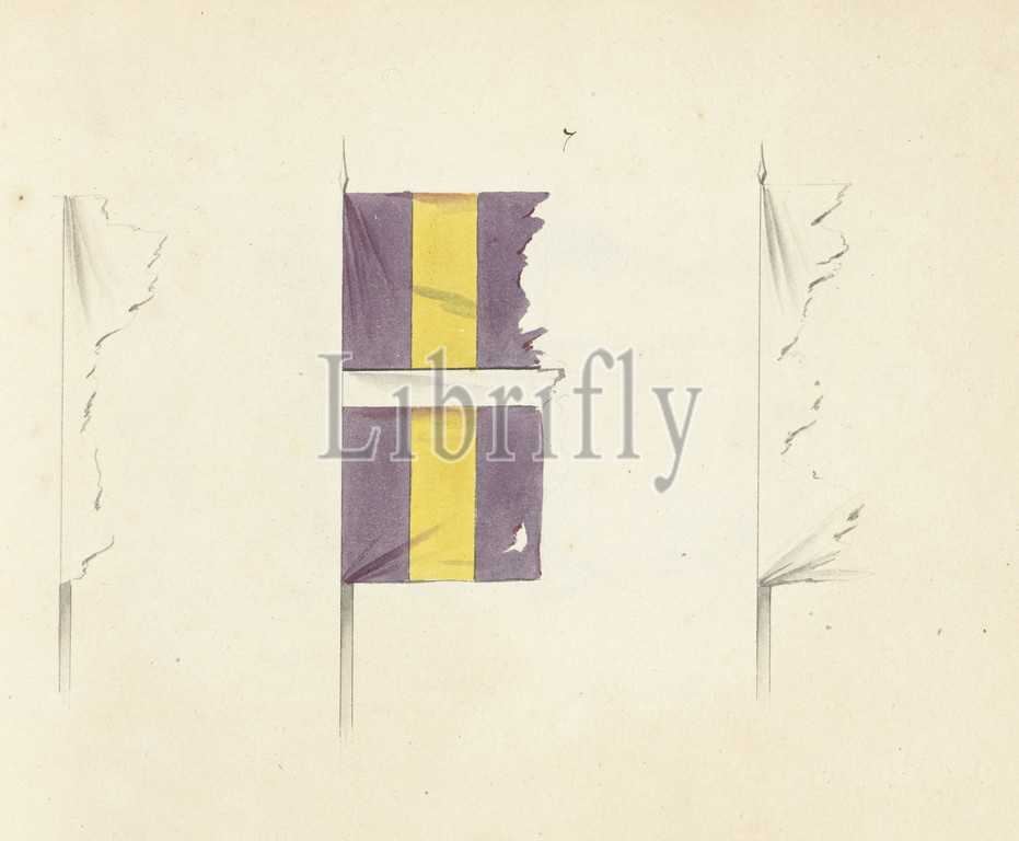 Three French banners, tatters, captured, Dendermonde, 1706, Three French banners, tatters, captured, Dendermonde, 1706, book, drawings, French banners, standards, timpani captured, War, Spanish Succession, 1701-1713, draughtsman, anonymous, Northern Netherlands, 1713, 1720, paper, writing, processes, drawing, height 172 mm, width 230 mm