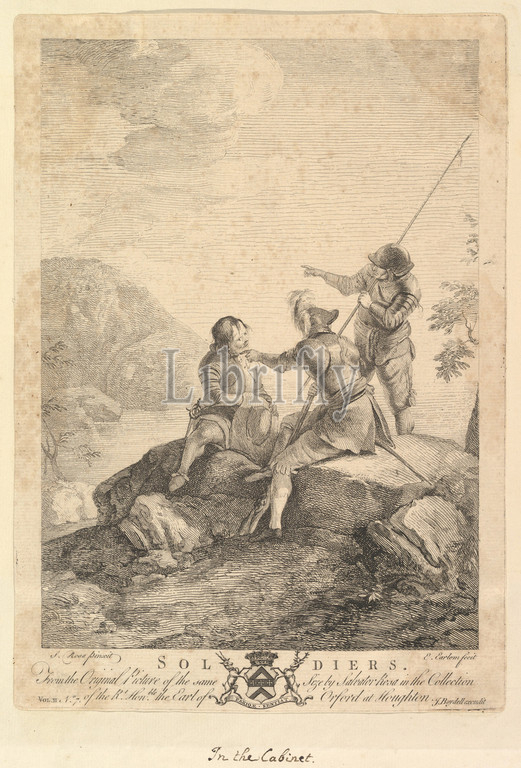 Three Soldiers, 1766–67, Engraving, sheet, 12 x 8 7/16, 30.5 21.5 cm, Prints, After Salvator Rosa, Italian, Arenella, Naples, 1615–1673, Rome