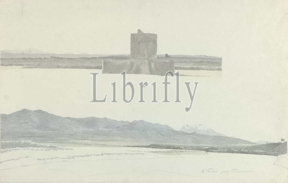 The Tiber at Fiumicino The Tiber at Fiumicino (right half), Drawing from a group of 46 drawings and studies of mainly cityscapes and landscapes in and around Rome., River (landscape with figures, staffage ), Fiumicino, Tiber, Josephus Augustus Knip, Italy, c. 1809 - c. 1812, paper, graphite (mineral), watercolor (paint), brush, h 238 mm × w 371 mm
