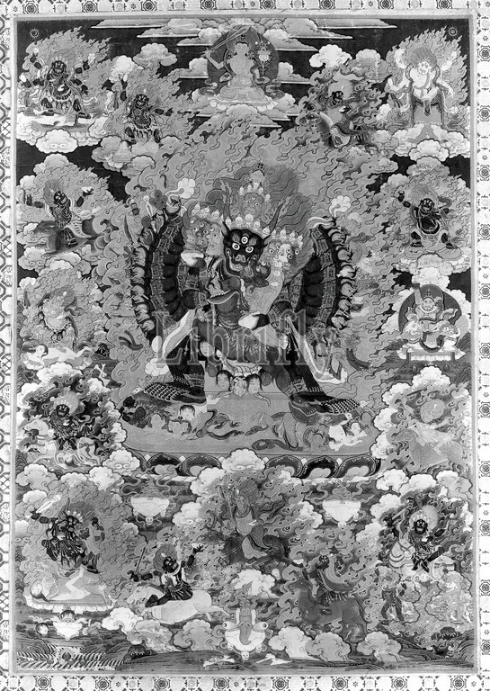 Tibetan, Yamantaka and Minor Deities, 18th Century, Watercolor on paper, mounted on linen, 27 x 19 1/4 in.