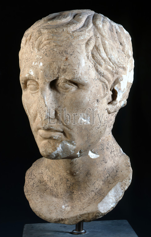 Timarchos, Kephisodot, Younger, Mission head, comedy poet Menander, property, Stiftung Hamburger Kunstsammlungen, marble, chiseled, smoothed, marble, Depth, ca, Sculptures, Portrait, Man, Head, Face, Writer, Poet, Author, Menander, Adoptive Emperor, Middle Empire, High Hellenistic, Greek Molière, Menander, founder, famous representative, New Comedy, born, 342, 1 B.C, and drowned, Piraeus, age, swimming, 108, survived, whereby, apart, Discolos, Misanthrope, and, Epitrepontes, Arbitration Court, unfortunately, dramas, survived, larger parts, portrait, somewhat mocking mouth part, Menander, bearded man, advanced age, seventy, circular sculptural repetitions, go back, seated statue, Praxiteles sons Kephisodot, Younger, Timarchos, erected, Dionysus Theater, Athens, Menander's death, beardless nature, Menander follows, fashion first introduced, Alexander, Great, Diadochi