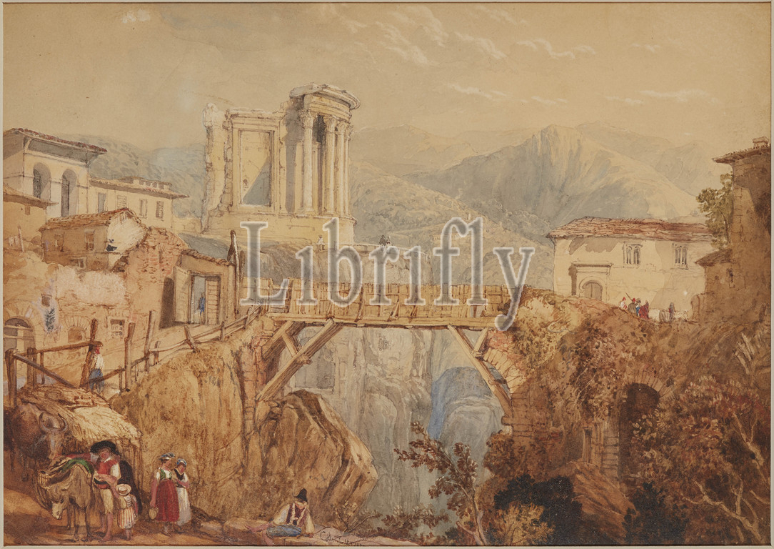 Tivoli, Clarkson Stanfield, English, 1793-1867, William Page, 1794-1872, 1833, watercolor, gouache, white paper, 9-1/4 x 12-3/4, sheet, Signed, dated, ink, l.c., C. Stanfield 1833 Signed, date