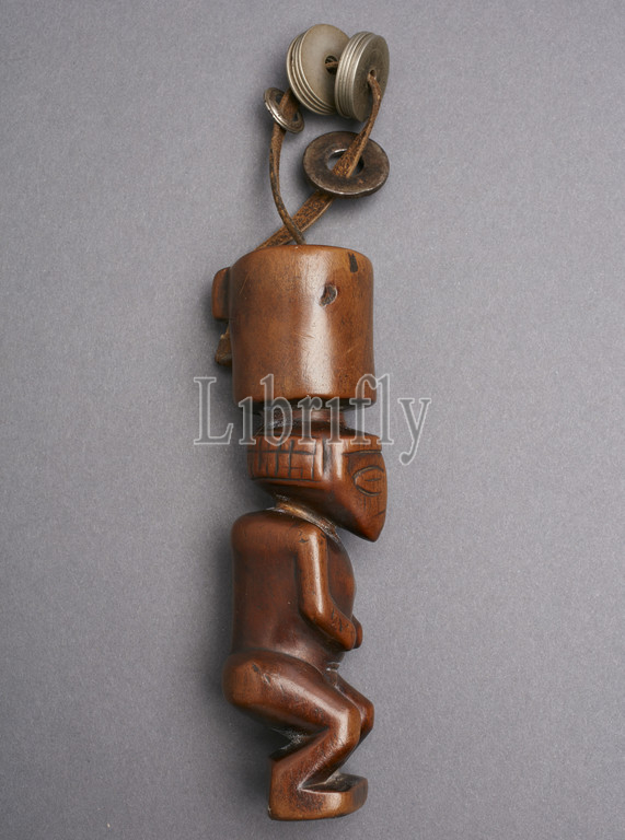 tobacco mortar, form, male figure, Chokwe people, 1880-1930, wood, leather, metal, H, 5-1/4, African Art