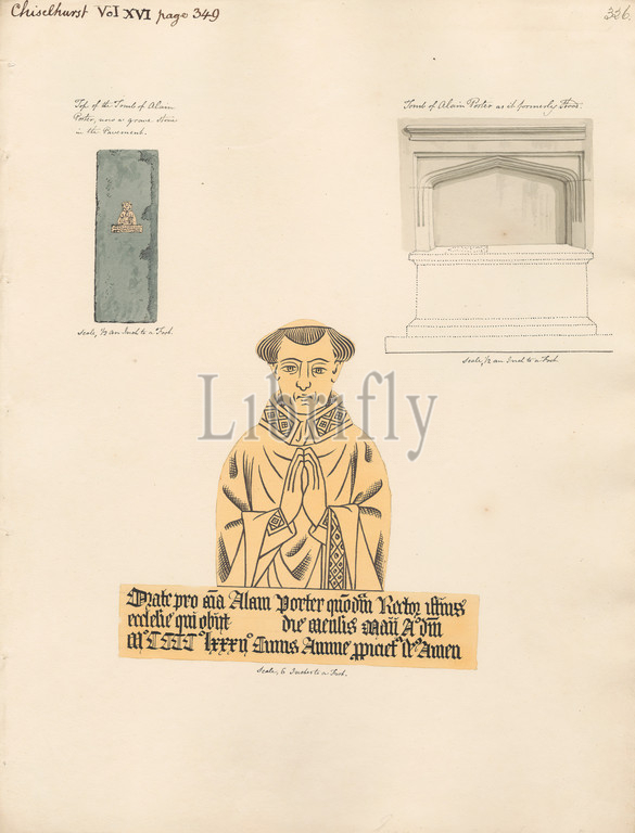 Tomb, Brass Plate, Alan Porter, Chiselhurst Church, Daniel Lysons, 1762–1834, British, 1796, 1811, Pen, black ink, watercolor, gouache, graphite, medium, slightly textured, cream wove paper, Sheet, architectural subject, brass, church, memorial, plate, tomb, Bromley, Chislehurst, England, Greater London, London, St. Nicholas' Church, United Kingdom