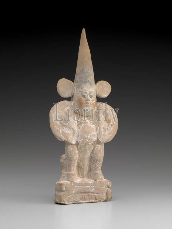 tomb guardian, Tang dynasty, early 700s, earthenware, paint, 12-1/2 x 5-1/8 x 2-3/8, Asian Art